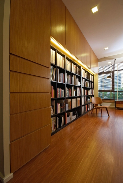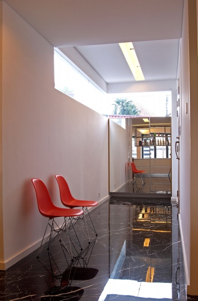 這個4500平方英尺的房子建在8000平方英尺的一個緩坡上降落。房子的方向是特殊的,因為它并不能面對服務道路,但有一個45度的傾斜。它能達到兩個目標:第一,寬度和建筑物的大小是優化;其次,它確保隱私的人。建筑結構保存雖然增加了一些微小的擴展。這房子被漆成白色,這樣一個能欣賞強壯的架構形式。黑暗的鋁框玻璃窗被安裝在眾議院。以補充現代形式、景觀建筑都保持清潔。蓄意使用戲劇性的Serralunga盆與Zamia紙板棕櫚成為焦點的花園。