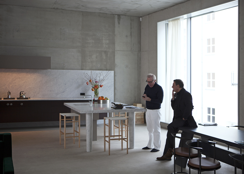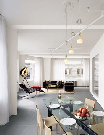 自從1997年接手了柏林“新博物館”的設(shè)計任務(wù)后,這位英國建筑大師就一直居住在柏林。在一座三層小房內(nèi),工作室、家都包括在內(nèi),Chipperfeld甚至還設(shè)計了一間小餐廳,讓附近的柏林人過來消遣。整個建筑物外觀是混凝土結(jié)構(gòu),赤裸的墻壁也印證著這位建筑師向來對干凈立面的偏好。從大扇的窗戶可以俯瞰街道和庭院,而室內(nèi)放置的上世紀(jì)五六十年代的意大利經(jīng)典家具則定義著這個建筑師家的自我放松。