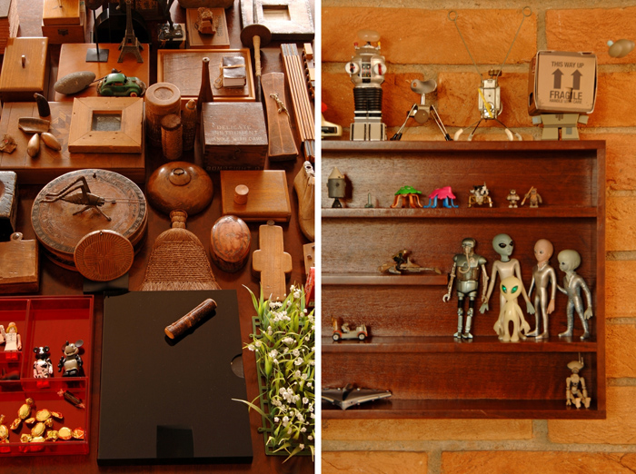 巴西建筑大師Marcio Kogan的家充滿了玩味與豐富元素,也許這和他原來是位電影制片人有關(guān)系。他的家在一座建筑的12樓——那座建筑是他1980年首次參加建筑比賽獲獎的一個作品。這個家的視野是窗外城市的天空,也是屋內(nèi)琳瑯滿目的擺件:無論是鋼琴上還是柜子上,擺滿了手稿、家具模型、旅行紀(jì)念品或是書籍。Kogan記得其中每件東西的來源和故事,他的家是他自己的記憶博物館。
